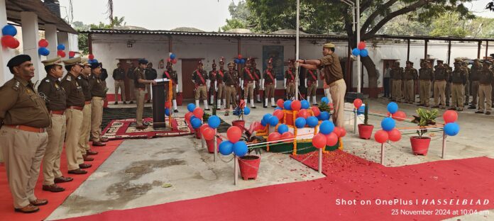 बता दें कि पुलिस लाइन में झंडा दिवस के अवसर पुलिस अधीक्षक आदित्य लांग्हे द्वारा ध्वजारोहण कर उपस्थित समस्त पुलिस अधिकारियों व कर्मचारियों को संबोधित किया गया। इस दौरान एसपी आदित्य लांग्घे ने कहा कि भारत के प्रथम प्रधानमंत्री जवाहर लाल नेहरु द्वारा 23 नवंबर 1952 को सर्वप्रथम उत्तर प्रदेश पुलिस को पुलिस ध्वज प्रदान किया गया था। उत्तर प्रदेश पुलिस पूरे भारत का प्रथम राज्य पुलिस बल है, जिसे उसके अप्रतिम योगदान के फलस्वरुप पुलिस कलर अर्थात पुलिस ध्वज प्रदान किया गया है, उत्तर प्रदेश पुलिस ध्वज, विभाग के गौरवशाली इतिहास और वीर जवानों की कर्तव्यपरायणता का गौरवपूर्ण प्रतीक है। यह ध्वज हमारी शौर्यगाथाओं का अमिट धरोहर है, जो प्रत्येक क्षण हमें अपने कर्तव्यों के प्रति जागरूक और समर्पित रहने की प्रेरणा देता है। इससे हमारे पुलिस कर्मियों के त्याग और बलिदान को भी याद किया जाता है।
