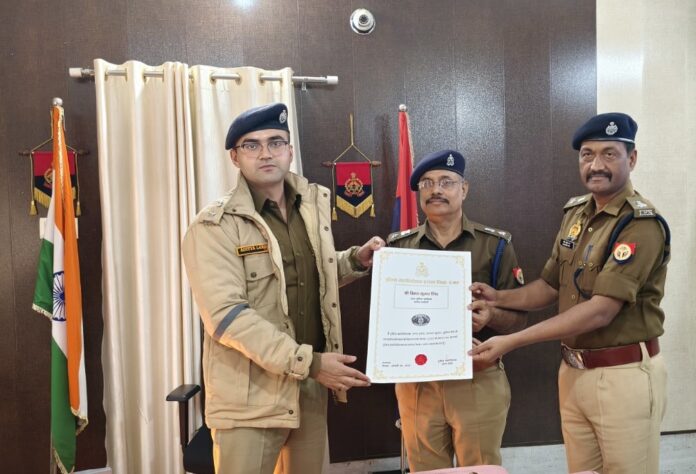 आपको बता दें कि 76वें गणतंत्र दिवस के अवसर पर पुलिस अधीक्षक आदित्य लांग्हे और पुलिस अधीक्षक ऑपरेशन अनिल कुमार यादव द्वारा अपर पुलिस अधीक्षक सदर विनय कुमार सिंह को उनके पुलिस सेवा में सराहनीय योगदान के लिए सम्मानित किया गया। उन्हें यह सम्मान पुलिस महानिदेशक, उत्तर प्रदेश के प्रशंसा चिन्ह “सिल्वर मेडल” के रूप में दिया गया। यह सम्मान उन्हें उनके उत्कृष्ट कार्यों और पुलिस सेवा के प्रति समर्पण के लिए प्रदान किया गया। एडिशनल एसपी विनय सिंह ने लंबे समय से अपनी कड़ी मेहनत, ईमानदारी और कर्तव्यनिष्ठा से पुलिस विभाग में अपनी पहचान बनाई है। उन्होंने कई महत्वपूर्ण अभियानों में सक्रिय भागीदारी निभाई और कानून व्यवस्था बनाए रखने में महत्वपूर्ण भूमिका अदा की। यह सम्मान उनके लिए एक प्रेरणा है और पुलिस विभाग में कार्यरत अन्य कर्मियों के लिए भी यह एक प्रेरणास्त्रोत है। इस अवसर पर चन्दौली पुलिस विभाग के अधिकारियों और कर्मचारियों ने उन्हें बधाई दी और उनकी सफलता की सराहना की।
