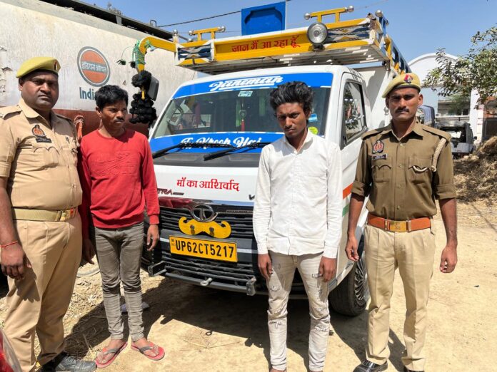 आपको बता दे कि अलीनगर थाना प्रभारी निरीक्षक विनोद कुमार मिश्रा मय एसआई अमित कुमार सिंह, आरक्षी कमलेश पांडेय, रोशन यादव और शैलेंद्र कुमार नेशनल हाइवे पर पचफेडवा के समीप जांच पड़ताल कर रहे थे। इसीबीच मुखबिर की सूचना पर पुलिस टीम ने हाइवे पर बैरिकेडिंग कर बिहार की ओर जा रहे दो संदिग्ध पिकअप भारवाहनों को रोका। लेकिन वाहनों के चालक वाहन को खड़ाकर अपने साथियों के साथ मौके से भागने लगे। जिन्हें पुलिस ने दबोच लिया। जब वाहनों की जांच की गई तो उन पर पांच मवेशी लदे थे। पुलिस तस्करों संग पिकअप भारवाहनों को मय मवेशी थाने ले गई। जहां तस्कर वाराणसी जिले के लोहता थाना क्षेत्र के करौता निवासी सिकंदर कुमार, जौनपुर जिले के मुंगराबादशाहपुर थाना क्षेत्र के पकड़ी निवासी सूरज प्रजापति और सतहरिया निवासी विनोद के खिलाफ मुकदमा दर्ज कर पुलिस अगली कार्रवाई में जुट गई।
