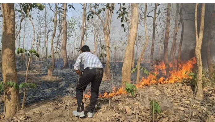 PRAHAR DUSTAK/चंदौली । जिले के चकिया कोतवाली क्षेत्र अंतर्गत सपही जंगल में रविवार को उस समय सनसनी फैल गई, जब जंगल में लगी आग को बुझाने में जुटे वन कर्मियों को एक अज्ञात शव मिला। घटना की सूचना मिलते ही स्थानीय पुलिस और प्रशासन में हड़कंप मच गया। वन कर्मियों ने तत्काल इसकी जानकारी पुलिस को दी, जिसके बाद पीआरबी की सूचना पर चकिया कोतवाली पुलिस मौके पर पहुंची।