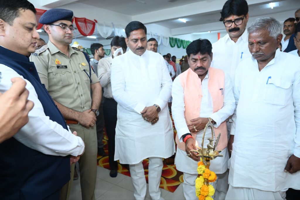 चंदौली जिले में उत्तर प्रदेश सरकार की “सेवा, सुरक्षा व सुशासन” नीति के आठ वर्ष पूर्ण होने के अवसर पर नियमताबाद के डीपीआरसी में समारोह का आयोजन किया गया। इसका शुभारंभ प्रदेश के समाज कल्याण राज्य मंत्री और जिले के प्रभारी मंत्री ने फीता काट कर किया।