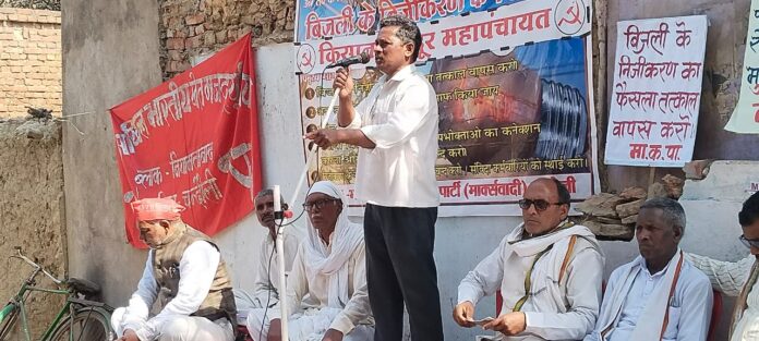 PRAHAR DUSTAK/चन्दौली। भारत की कम्युनिस्ट पार्टी (मार्क्सवादी) ने बुधवार को बबुरी थाना क्षेत्र के पांडेयपुर कस्बा में बिजली के निजीकरण के खिलाफ किसान मजदूर महापंचायत का आयोजन किया। महापंचायत में बिजली कानून संशोधन 2022 को वापस लेने के साथ ही वाराणसी और आगरा विद्युत वितरण निगम के निजीकरण के फैसले को तत्काल वापस लेने की मांग की गई।