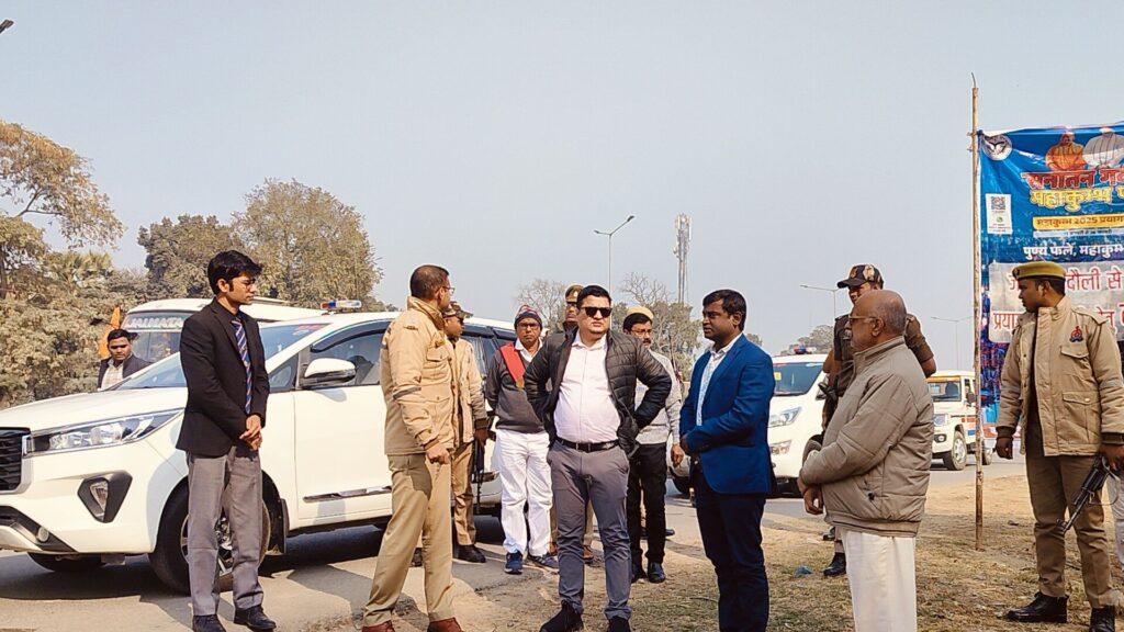 निरीक्षण के दौरान डॉ० सर्वेश गौतम, सहायक सम्भागीय परिवहन अधिकारी, चन्दौली, अलोक कुमार (ए०ई०) पीडब्ल्यूडी०, ललित कुमार मालवीय, यात्री / मालकर अधिकारी व परिवहन विभाग के स्टाफ के साथ महाकुम्भ में जाने वाले तीर्थ यात्री उपस्थित रहे।