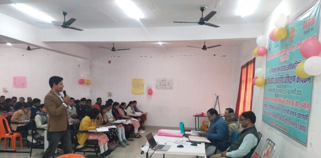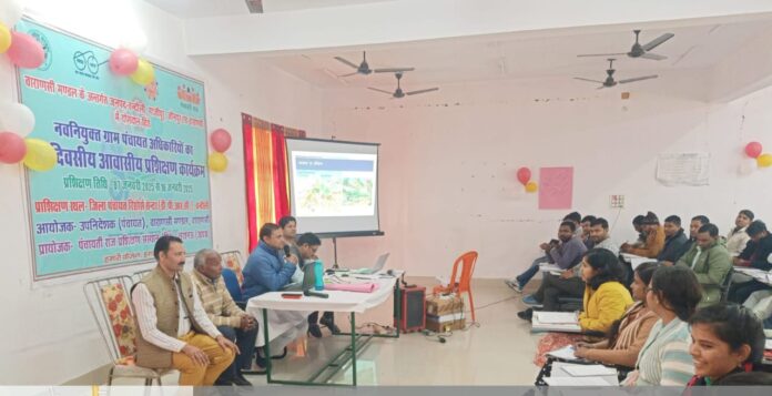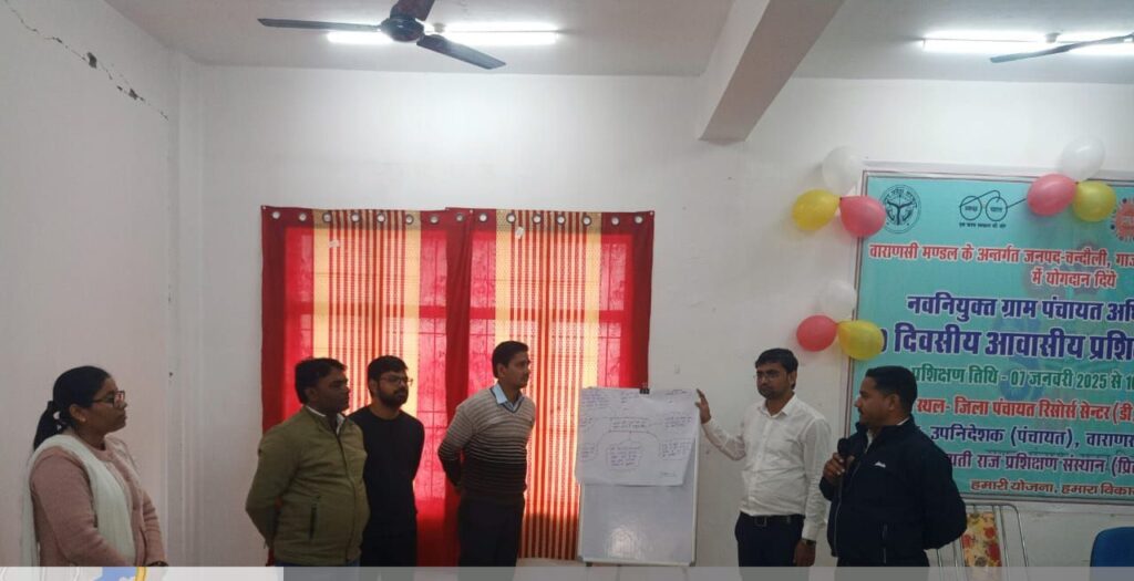 चन्दौली जिले के जिला पंचायत संसाधन केंद्र में चल रहे वाराणसी मंडल के सभी जिलों के नव नियुक्त ग्राम पंचायत अधिकारियों के छठें दिन के आवासीय प्रशिक्षण का शुभारंभ डीपीआरसी के वरिष्ठ फैकल्टी सुनील सिंह ने दीप प्रज्वलित कर किया। प्रशिक्षण में दूसरे दिन चंदौली के 17, गाजीपुर के 42, जौनपुर के 42 और वाराणसी के 12 ग्राम पंचायत अधिकारियों ने प्रतिभाग किया। प्रशिक्षण के छठें दिन स्वच्छ भारत मिशन ग्रामीण, खुले में शौच मुक्त गांव, ठोस तरल अपशिष्ट प्रबंधन, गांव में कूड़ा संग्रहण केंद्र का निर्माण और संचालन, नाडेप, खाद गड्ढा, फिल्टर चैंबर, केंद्रीय वित्त के तहत टाइड और अनटाइड फंड, राज्य वित्त के फंड प्रयोग आदि की जानकारी दी गई।