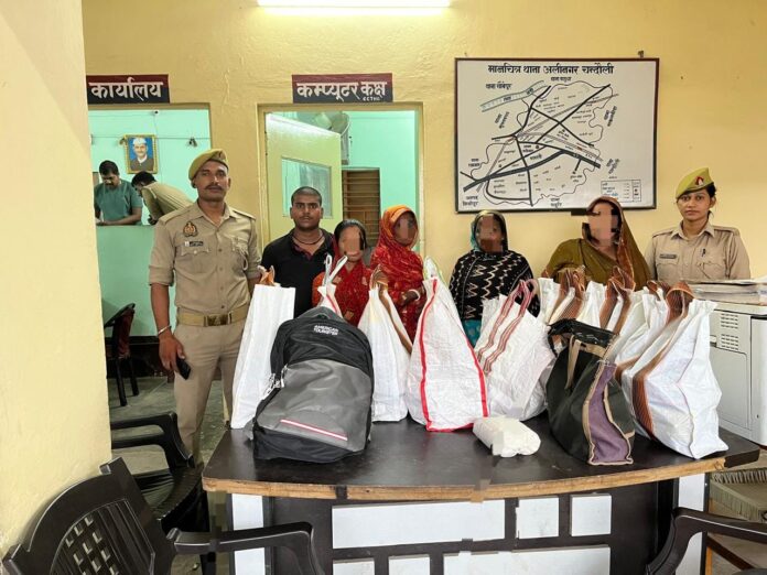 PRAHAR DUSTAK/चंदौली । जिले की अलीनगर पुलिस ने गोधना अंडरपास के समीप से मंगलवार की शाम चार महिला सहित पांच तस्करों को सात पेटी अवैध अंग्रेजी शराब और दो पेटी बियर के साथ पकड़ा। जिनके खिलाफ मुकदमा दर्ज कर पुलिस अगली कार्रवाई में जुट गई।