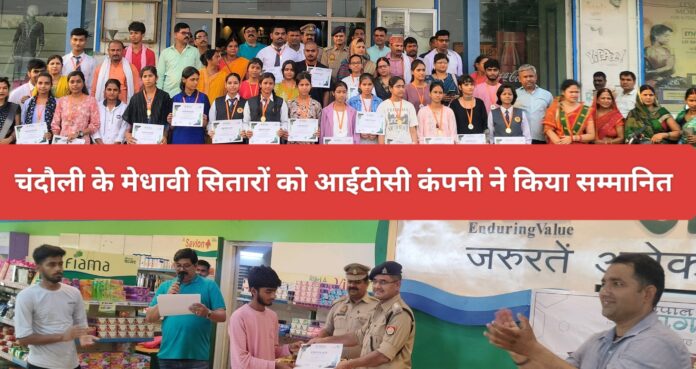 चंदौली जिले के चौपाल सागर परिसर में आयोजित कार्यक्रम में आईटीसी कंपनी की ओर से जिले के 48 मेधावी छात्र-छात्राओं को मेडल व प्रशस्ति पत्र देकर सम्मानित किया गया। यह सम्मान उन विद्यार्थियों को दिया गया जिन्होंने सीबीएसई एवं यूपी बोर्ड की परीक्षाओं में 90 प्रतिशत से अधिक अंक प्राप्त कर जिले का नाम रोशन किया था।