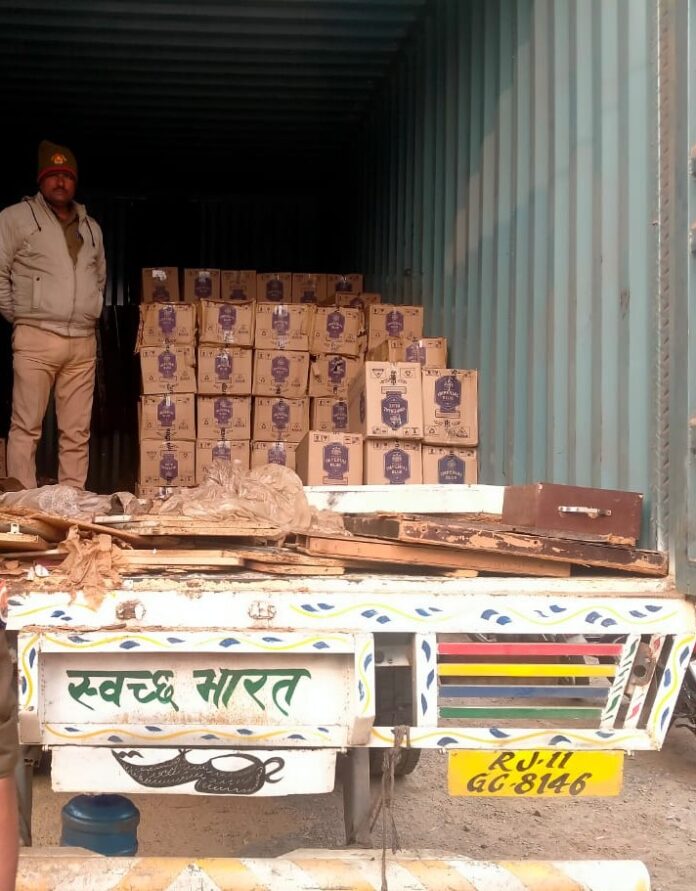 इस संबंध में जानकारी देते हुए सीओ सदर देवेंद्र कुमार ने बताया कि सदर कोतवाल संजय सिंह शनिवार की रात में नवही पुलिस चौकी क्षेत्र में मय फोर्स गश्त कर रहे थे। इसी बीच मुखबिर से सूचना मिली कि एक तकनीकी रूप से खराब कंटेनर सदर कोतवाली के समीप स्थित नेशनल हाईवे ओवरब्रिज के पास खड़ा है। जिसमें अवैध रूप से गैर प्रांत की शराब लदी हुई है। सूचना पर तत्काल पुलिस टीम मौके पर पहुंची। जहां वाहन की जांच पड़ताल की गई। जबकि उसके पास कोई चालक या खलासी मौजूद नहीं मिला। हालांकि पुलिस ने आसपास उन्हें तलाश करने का पूरा प्रयास किया लेकिन चालक या खलासी का कहीं पता नहीं चल सका। जब कंटेनर की जांच की गई तो उसके पहले भाग में लकड़ी का कबाड़ और रद्दी सामान रखा हुआ था। उसके अगले भाग को लोहे की चादर को वेल्डिंग करके अलग किया गया था। जिसे गैस कटर के माध्यम से काटा गया। जब उसकी जांच हुई तो उसमें भारी मात्रा में अवैध शराब लदी हुई थी। जांच पड़ताल के दौरान गैर प्रान्त की कुल एक हजार 809 लीटर अंग्रेजी शराब बरामद हुई। जिसकी कीमत 20 लाख रुपए आंकी गई। वहीं जब कंटेनर के नंबर प्लेट पर दर्ज पंजीकरण संख्या से उसकी जांच की गई तो वाहन का मालिक मध्य प्रदेश के ग्वालियर जिले के बिरला नगर ग्रिड के न्यू कॉलोनी निवासी पंकज बघेल निकला जो अस्थाई रूप से राजस्थान में रहता है। पुलिस ने कंटेनर को सीज कर दिया और मुकदमा दर्ज कर अगली कार्रवाई में जुट गई।