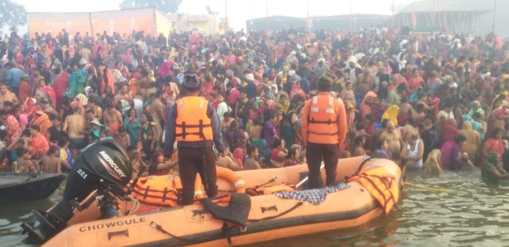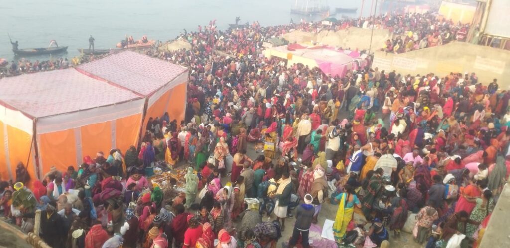 PRAHAR DUSTAK/चन्दौली। मौनी अमावस्या ( माघ मेला ) पर मंगलवार को बलुआ स्थित पश्चिम वाहिनी गंगा तट पर आस्था का जनसैलाब उमड़ पड़ा। गंगा घाट श्रद्धालुओं से खचाखच भरा रहा। लाखों श्रद्धालुओं ने पश्चिम वाहिनी घाट पर पतित पावनी मां गंगा में आस्था की डुबकी लगाई।