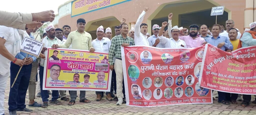 PRAHAR DUSTAK/चंदौली । पुरानी पेंशन बहाली के लिए अटेवा पेंशन बचाओ मंच ने अब संघर्ष तेज कर दिया है। शुक्रवार को अटेवा के नेतृत्व में विभिन्न संगठनों ने जिलाध्यक्ष देवेंद्र प्रताप सिंह के नेतृत्व में जिला मुख्यालय पर रोष मार्च निकाला। जो धरना स्थल से शुरू होकर कलक्ट्रेट तक गया। जहां एनपीएस, यूपीएस और निजीकरण को बंद कर ओपीएस लागू करने से सम्बंधित प्रधानमंत्री और मुख्यमंत्री को संबोधित ज्ञापन सौंपा गया। इसमें पुरानी पेंशन बहाली तक संघर्ष जारी रखने का निर्णय भी लिया गया।