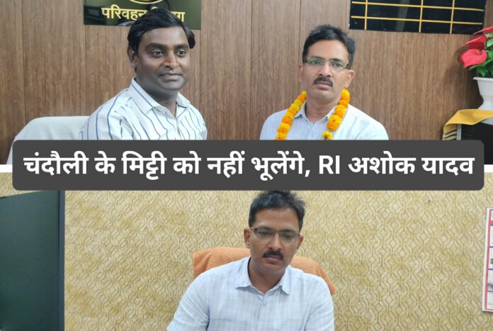 चंदौली जिले के परिवहन विभाग में तैनात रीजनल इंस्पेक्टर (RI) अशोक कुमार यादव का तबादला जौनपुर कर दिया गया है। सोमवार शाम को परिवहन कार्यालय में आयोजित विदाई समारोह में उन्हें सम्मानपूर्वक विदा किया गया। एआरटीओ डॉ. सर्वेश कुमार गौतम ने पुष्पगुच्छ भेंट कर अशोक यादव को सम्मानित किया और उनके उज्ज्वल भविष्य की कामना की।