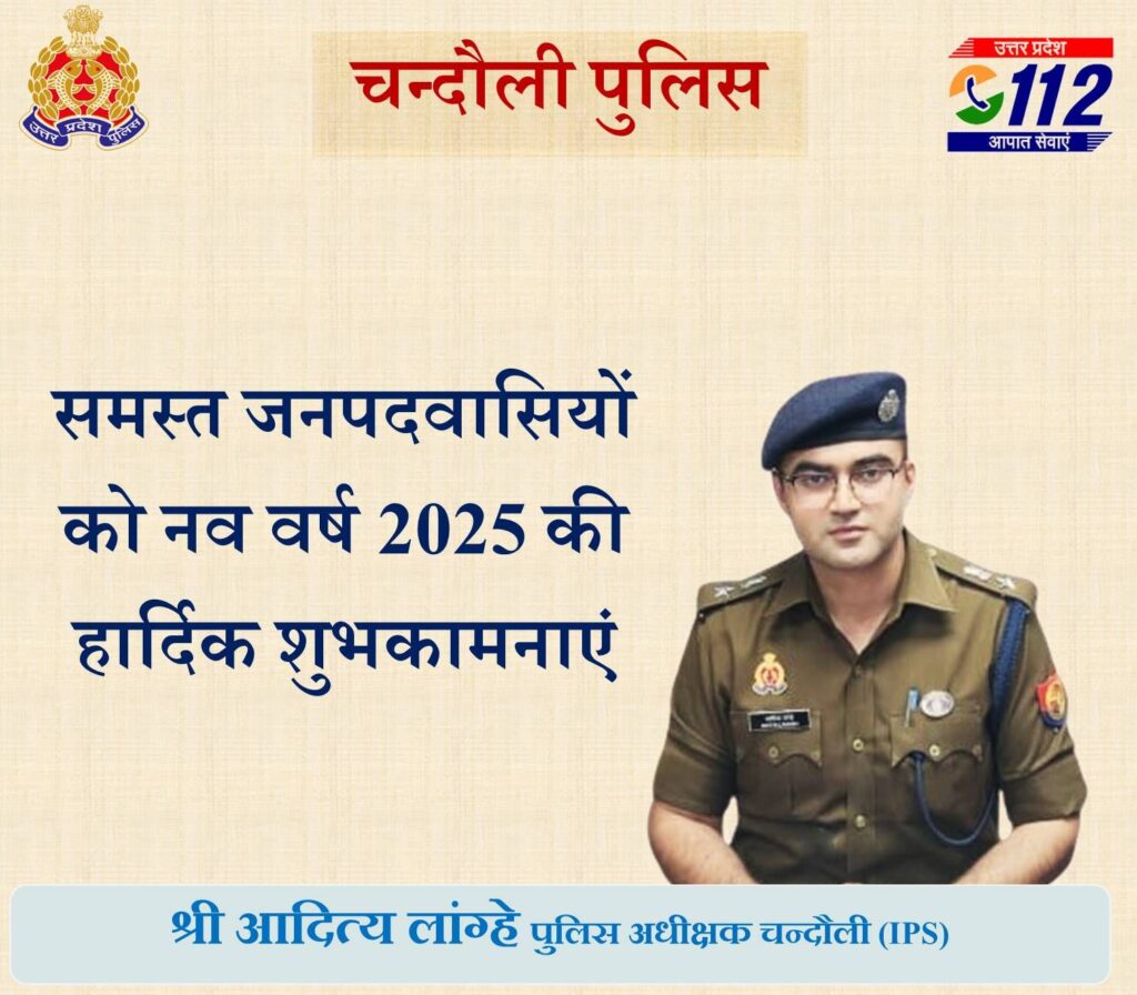 Chandauli News: नए साल पर समस्त जनपदवासियों को SP आदित्य लाग्घे दी शुभकामनाएं, ट्रैफिक नियमों का पालन करने की अपील
