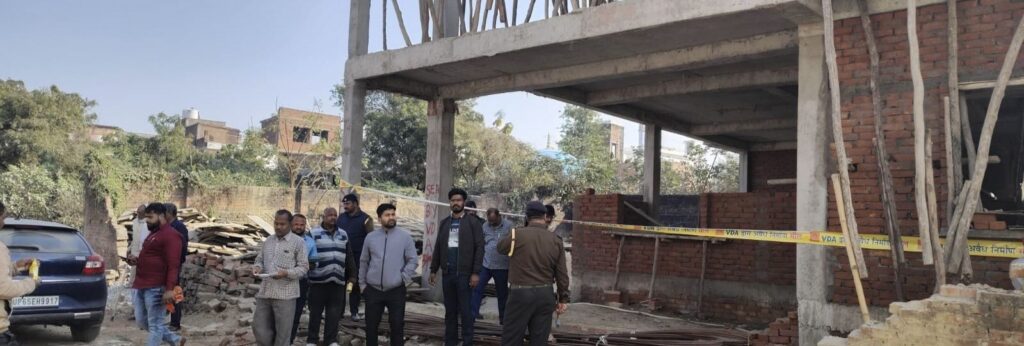 भीटी में निर्माणाधीन मकान को सील करती वीडीए की टीम