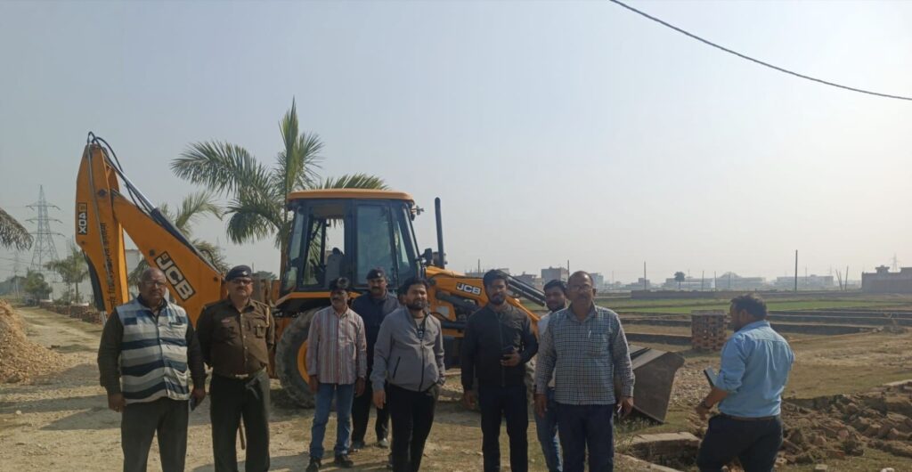 खजूरगाव में प्लाटिंग को जमींदोज कराते वीडीएकर्मी