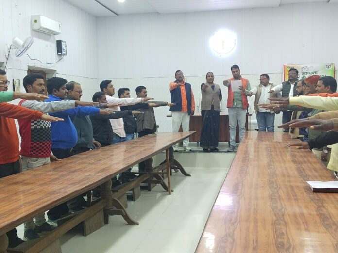 चंदौली जिले के पीडीडीयू नगर नगर पालिका में शनिवार को अध्यक्ष सोनू किन्नर के नेतृत्व में मतदाता शपथ कार्यक्रम आयोजित किया गया। जिसमें काफी संख्या में सभासद, वह अध्यक्ष प्रतिनिधि शमशाद अली सफाई इंस्पेक्टर शत्रुंजय कुमार सहित दर्जनों लोग उपस्थित रहे सभी ने एक स्वर में मतदाता दिवस पर शपथ लिया।