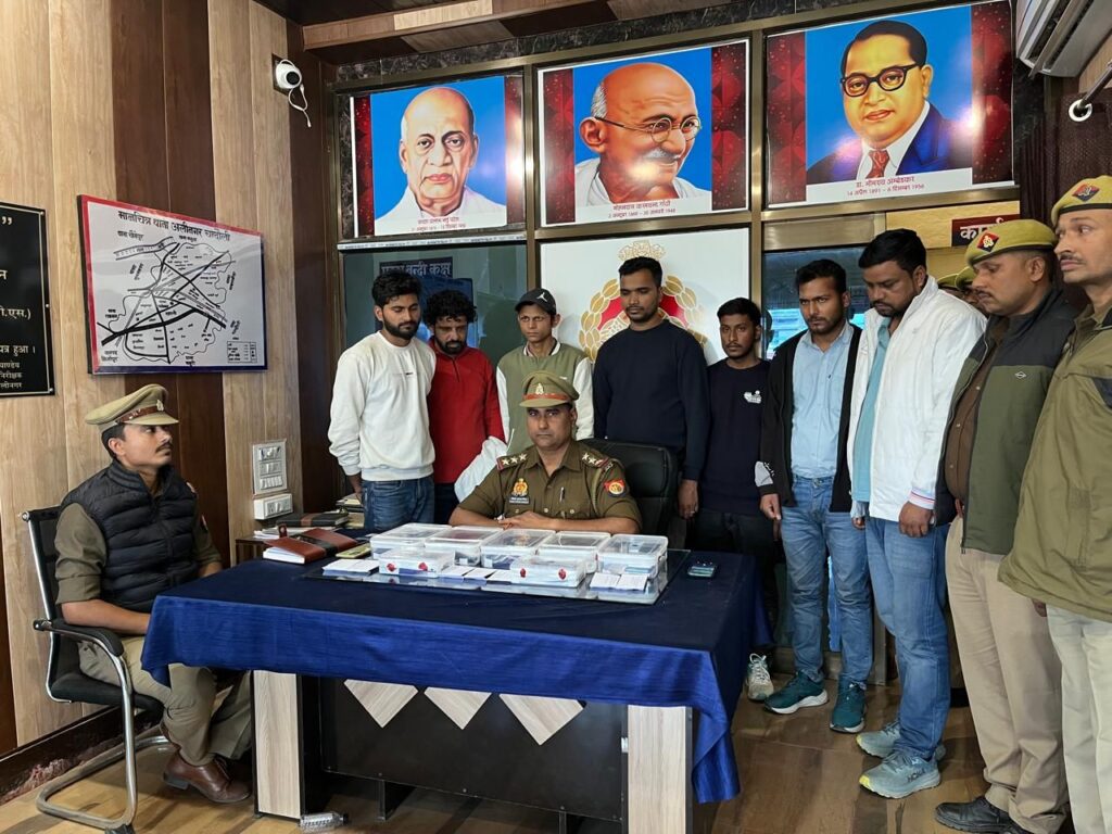 सात वांछित साइबर फ्रॉड अपराधियों से पूछताछ करती अलीनगर पुलिस