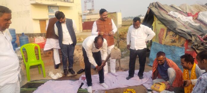 चंदौली जिले के नियमताबाद ब्लाक अंतर्गत कठौडी ग्राम पंचायत के मुख्य द्वार का शिलान्यास मुगलसराय विधायक रमेश जायसवाल ने भूमि पूजन कर किया। इस दौरान आधा दर्जन ग्राम प्रधान भूमि पूजन में शामिल हुए। विधायक ने कहा कि शासन के मंसा अनुरूप गांव का चौमुखी विकास पंचायत स्तर पर किया जा रहा है।