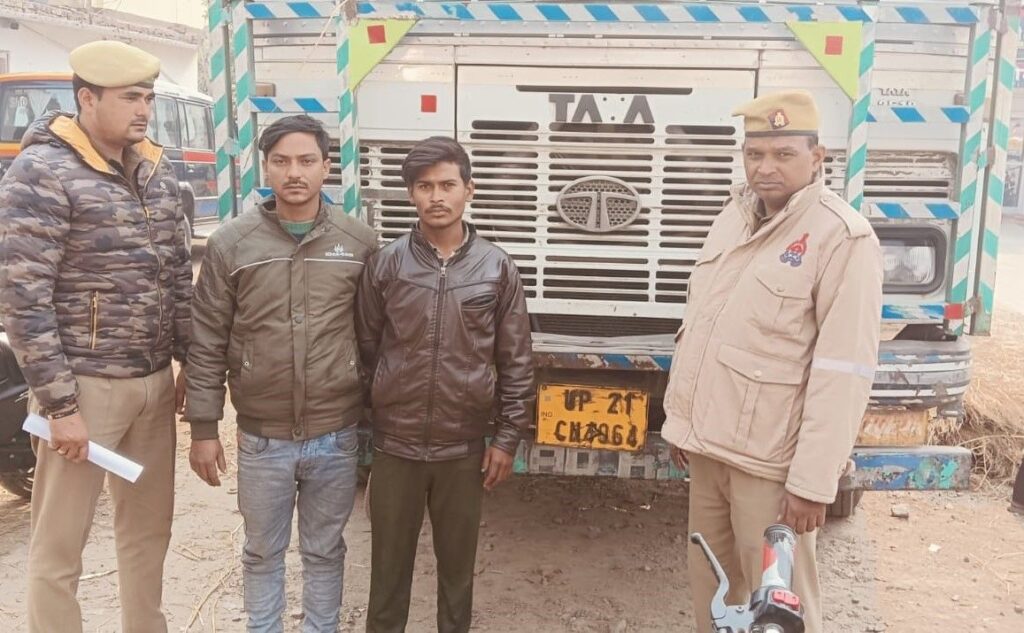 आपको बता दें कि अलीनगर थाना प्रभारी निरीक्षक विनोद कुमार मिश्रा मय एसआई अनंत कुमार भार्गव, आरक्षी कमलेश पांडेय, दीपक यादव, अनन्त सिंह और शैलेंद्र यादव नेशनल हाइवे पर सिंघीताली के समीप जांच पड़ताल कर रहे थे। इसीबीच मुखबिर की सूचना पर पुलिस टीम ने हाइवे पर बैरिकेडिंग कर बिहार की ओर जा रहे एक संदिग्ध कंटेनर को रोका। लेकिन वाहन का चालक वाहन को खड़ाकर मौके से भागने लगा। जिसे पुलिस ने दबोच लिया। वही कंटेनर की केबिन में बैठे एक अन्य तस्कर को भी पुलिस ने दबोचा। जब कन्टेनर की जांच की गई तो उस पर 31 मवेशी लदे थे। पुलिस तस्करों और कंटेनर को मय मवेशी थाने ले गई। जहां तस्कर मुरादाबाद जिले के मुंडा पांडेय थाना क्षेत्र के नरखेड़ा निवासी शरीफ और औरैया जिले के अजीतमल थाना क्षेत्र के बाबरपुर निवासी सानूर खान के खिलाफ मुकदमा दर्ज कर अगली कार्रवाई में जुट गई।