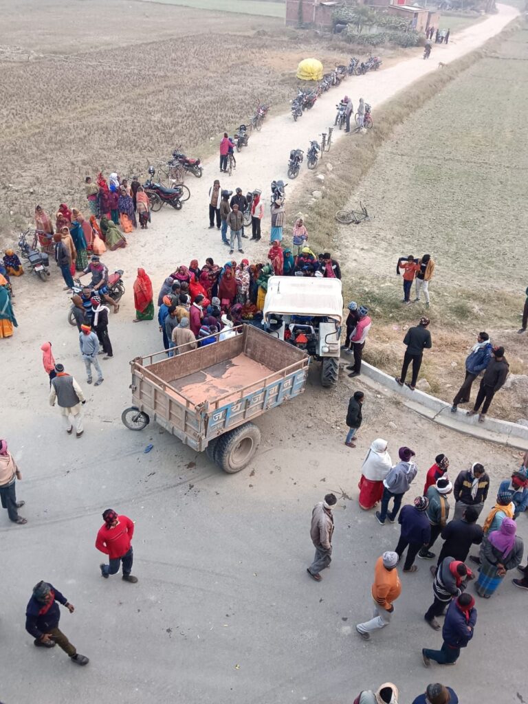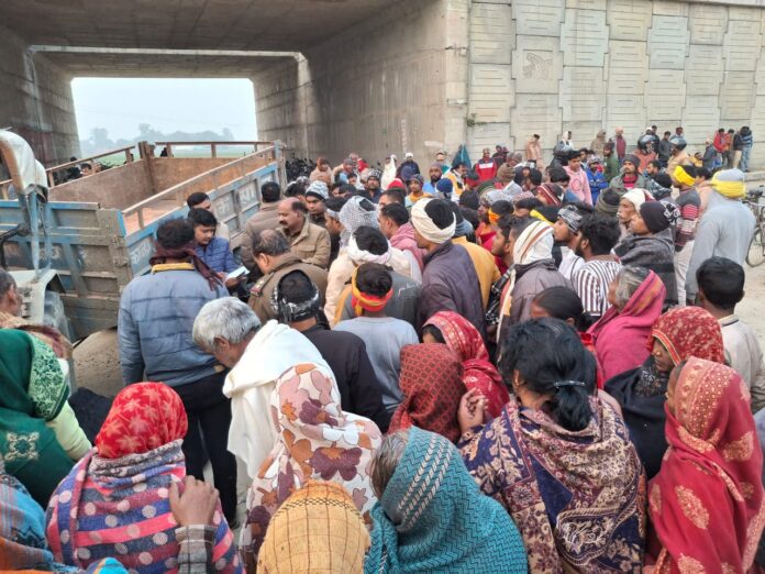 आपको बता दे की अलीनगर क्षेत्र धामिना गांव के महेश की पत्नी शीला देवी अपने मां के दाह संस्कार में शामिल होने के लिए कैली गांव गई थी। जैसे ही दाह संस्कार करके अपने पति के साथ मोपेड से सैदपूरा पहुंचे ही थे कि पीछे से एक ट्रैक्टर चालक ने टक्कर मार दी। टक्कर की चपेट में आने से शीला की मौके पर मौत हो गई। ट्रैक्टर चालक अपना ट्रैक्टर ट्राली छोड़कर मौके से फरार हो गया। शीला की मौत के बाद स्थानीय ग्रामीणों ने आक्रोशित होकर सड़क पर शव रखकर जाम कर दिया। ग्रामीणों ने ट्रैक्टर चालक के खिलाफ कड़ी कार्रवाई की मांग की। सूचना पर पहुंचे मुगलसराय कोतवाल विजय बहादुर सिंह ग्रामीणों को समझने की कोशिश की।